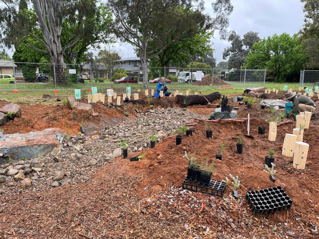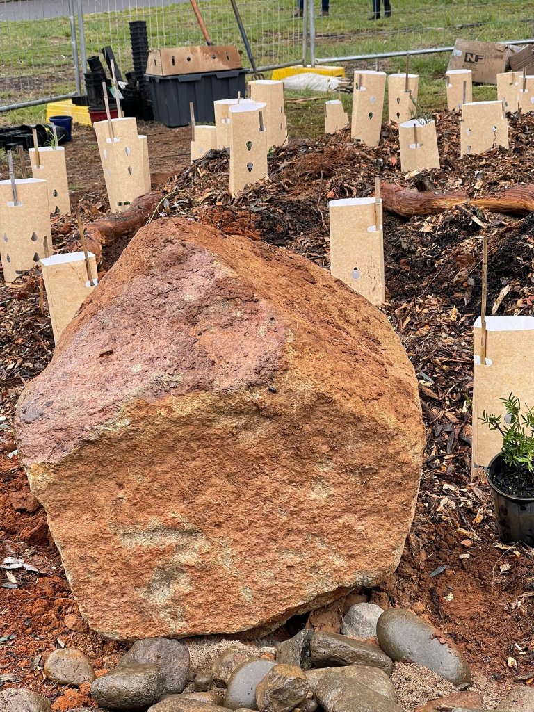 Here are some photos from the planting day at the Watson community micro-forest project this morning! It’s going to be amazing. We loved all the logs, rocks, hills, gullies and the dry creek bed – not to mention the variety of beautiful native plants! A lovely community building project. Well done Watson team! Thanks for letting us be part of it and inspiring our journey in Holt too.