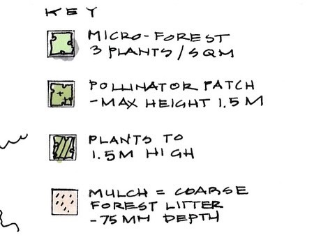 We are pleased to announce that yesterday we received the updated landscape design documents for the Holt Micro-Forest from Edwina Robinson at The Climate Factory. These have now been aligned with the water harvesting design from Paul Totterdell and have been submitted to TCCS for formal approval to commence earthworks! You’ll notice a slight change in positioning of the dry creek bed to maximise the benefit of the water harvesting design beneath the forest. The log elements are also not displayed in this version of the diagram but are progressing well and will be incorporated into our park at later stages, once the initial micro-forest planting occurs.